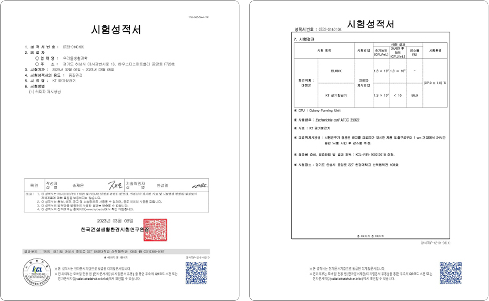 공인 성적서로 인정받은