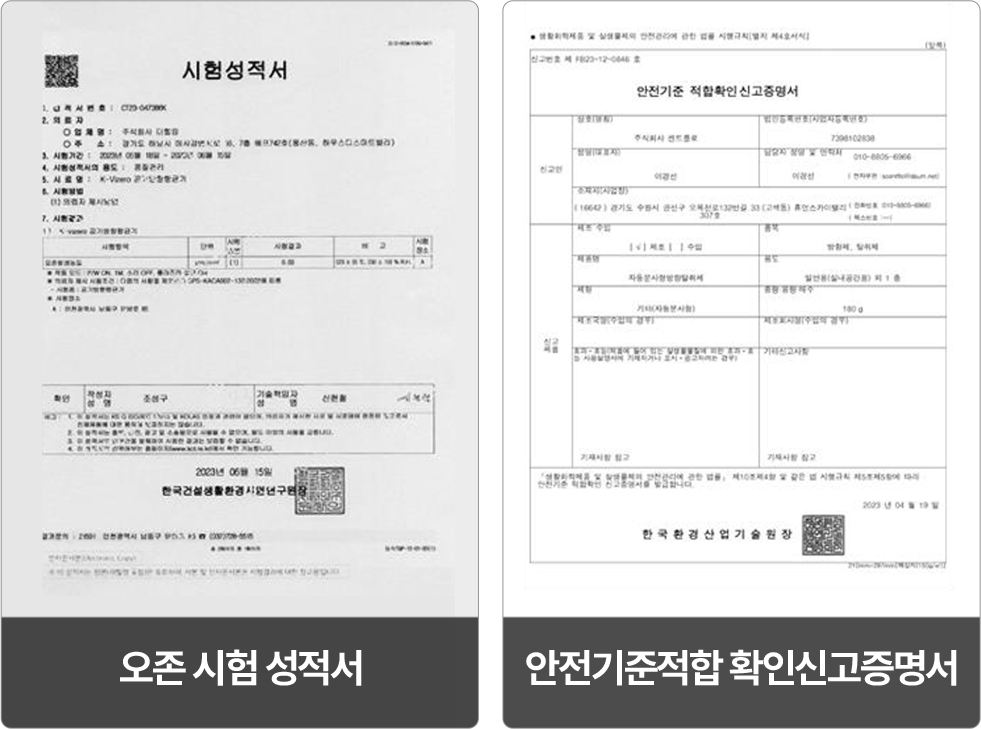 발생되는 오존의 양이 국가에서 정한 안전 규격에 든다는